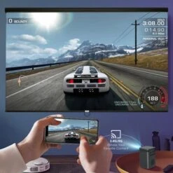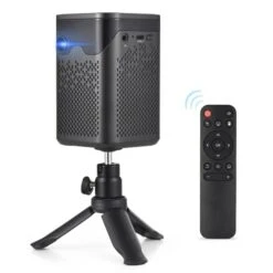 Mini Projector: 110x74x74mm compact size and only 410g, way more portable and less burden to carry it outdoor just put it in your bag or suitcase. Have a great movie experience with your friends, parents, colleagues. Comes with a remote controller, with simple UI interface makes it easier to operate.