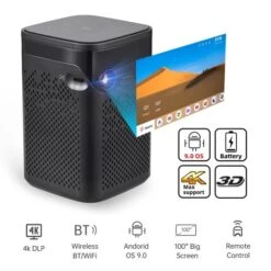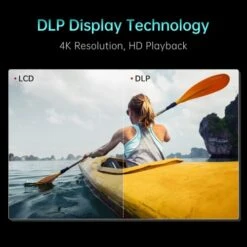 Outstanding Performance: Support 4K HD Playback, DLP display technology. Design with focusing wheel to adjust the definition according to the projection distance (Recommend 50-300cm). Available to manual focus and support keystone correction function. 1.2:1 throw ratio provides you more freedom for projector installation and placement, ensuring it fits any room, big or small, seamlessly.