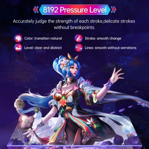 【8192 Pressure Level Induction】 The pen features 8192 pressure level, 25ms fast response rate, 300 PPS tablet reading speed, makes drawing lines are more delicate, more detailed, gives you a smooth and natural feeling when you drawing.