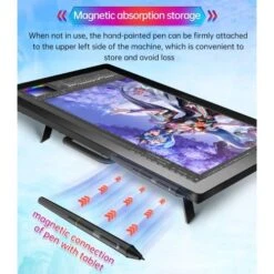 【Portable Design】 With foldable metal stand on the back, tilt the pen computer to a 19° degree angle by the foldable stands on the back, retractable when not in use, easy to carry. And design a magnetic suction place for stylus, easy to stick and find.