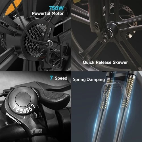 750W high-speed brushless motor provides the electric bike with strong power to reach a top speed of 28mph.
