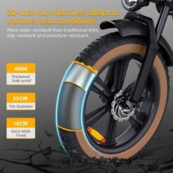 Comfort design: Front fork suspension dual alloy front fork shock absorber and preload make the ride smoother and more comfortable; 20″ x 4″ fat tires provide super grip and traction.