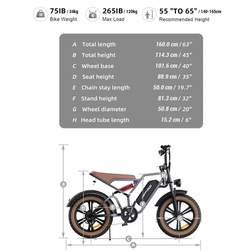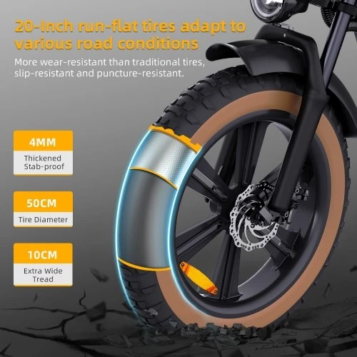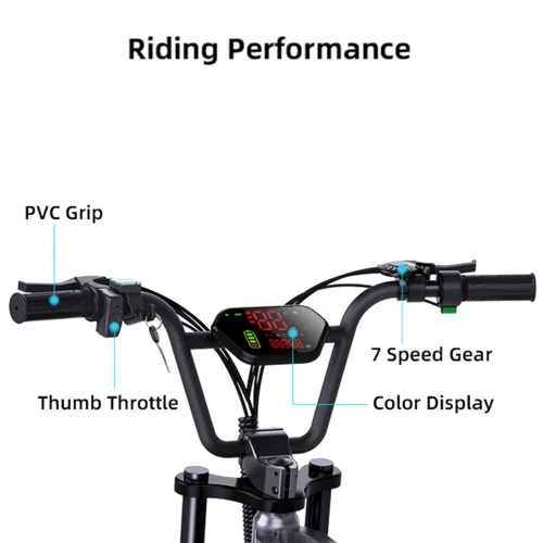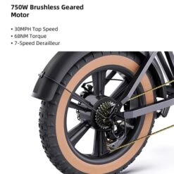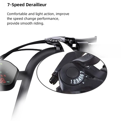 High-performance motor: 750W brushless gear motor, maximum speed up to 30MPH, 70Nm torque, equipped with 7-speed transmission.