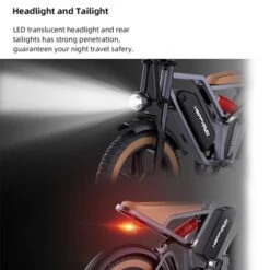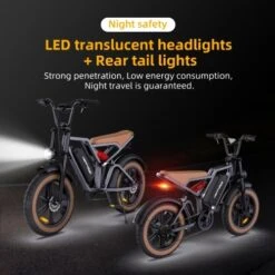 Safety guarantee: front and rear mechanical disc brakes provide reliable and powerful braking force; LED translucent headlights and taillights.