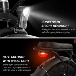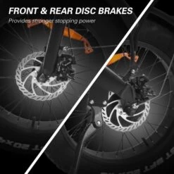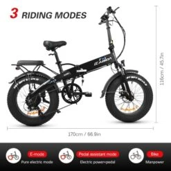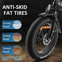 20*4.0″ fat rubber tyres provide enhanced traction and smoother ride on various terrains like mountain road, pavement, snow road, beach.