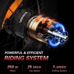 250 Watt motor power provides strong momentum for the bike to reach a top speed of 25km/h.