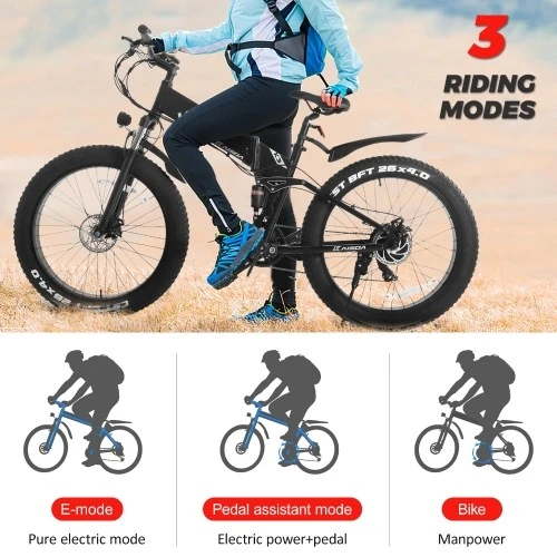 3 work modes: pure electric mode, electric power+pedal mode, manpower mode.
