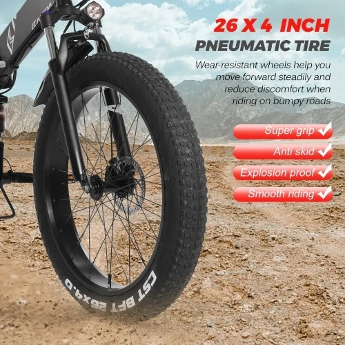 26×4 inches fat Tyre, super grip, anti skid, explosion proof, provide you with the best riding experience.