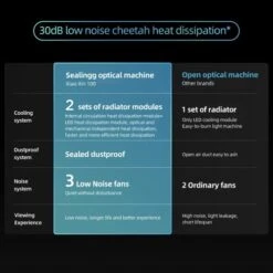 Composite heat dissipation design ensures reliable and fast heat dissipation while taking into account the immersive experience. The running noise is as low as 30db, as lightas a leaf swinging , quiet watching is the real enjoyment.