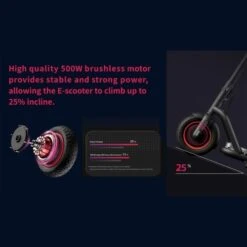 [500W Brushless Motor] High quality 500W brushless motor, provides stable and strong power, improving the hill-climbing performance by 20%,allowing the E-scooter to climb up to 25% incline.Â
