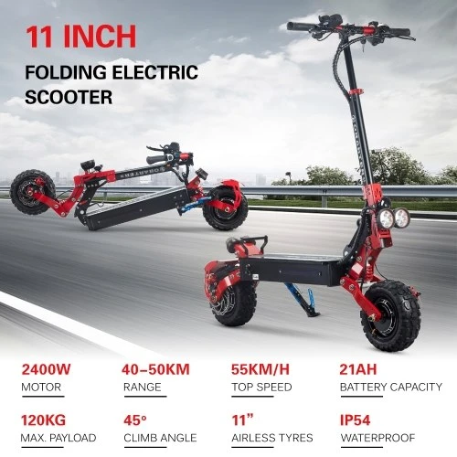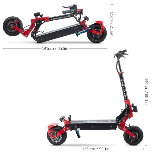 Features dual 1200W high speed gear motor, Â boasting top speed of 55km/h.
