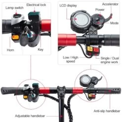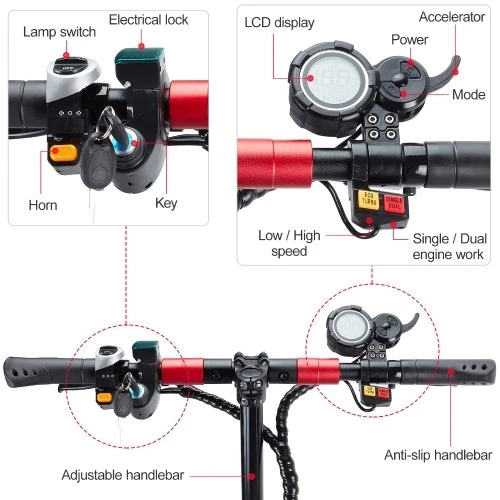 The LCD display shows current speed, speed modes, battery life and riding time.Â