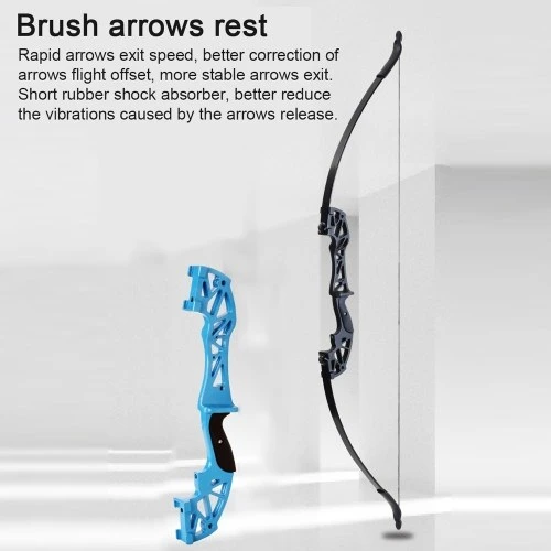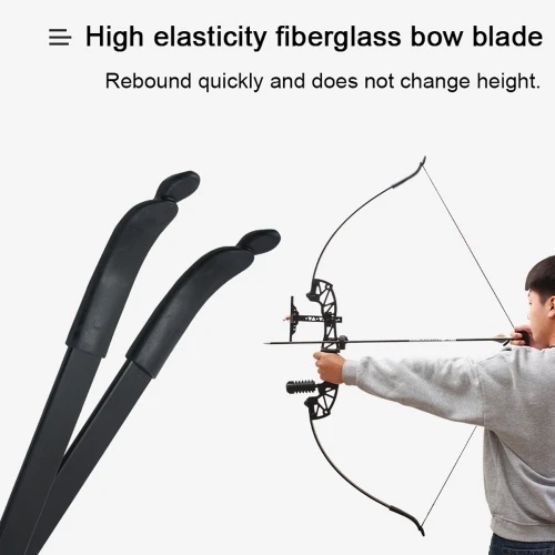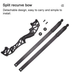 Split recurve bow, detachable design, easy to carry and simple to install. High elasticity fiberglass bow blade, rebound quickly and does not change height.