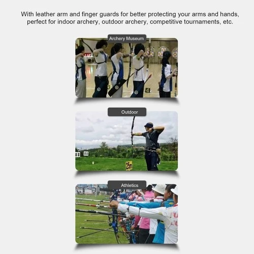 With leather arm and finger guards for better protecting your arms and hands, perfect for indoor archery, outdoor archery, competitive tournaments, etc.