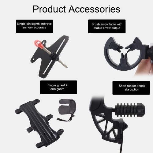 Hand-woven multi-strand bowstring, strong and with nice durability, high strength, not easy to break. Singles-pin bow sight, made of metal, to improve the accuracy of archery.