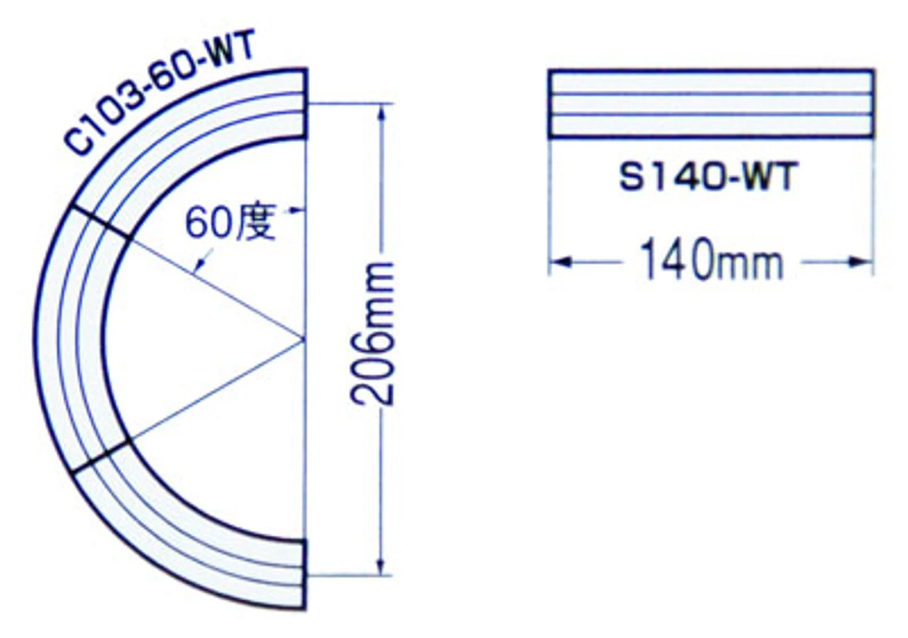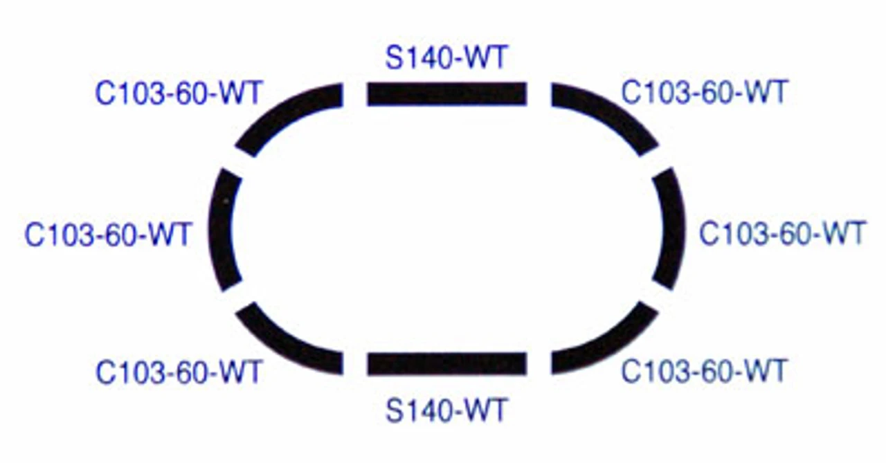 6x 103mm Radius 60 degree Wide Tram Curve Track C103-60-WT(F)