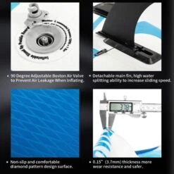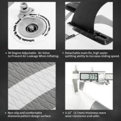 Triple bottom fins allow for a fast tracking, easy steering and maneuverability control.
